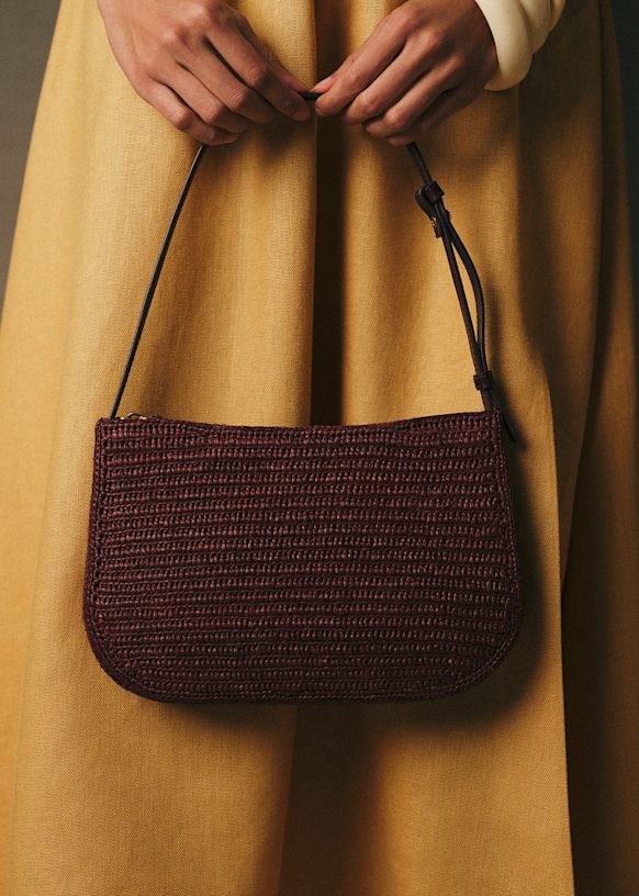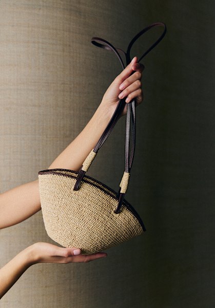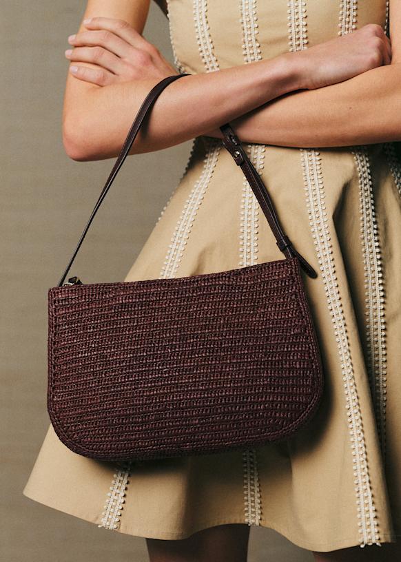 - Exterior in raffia and smooth leather