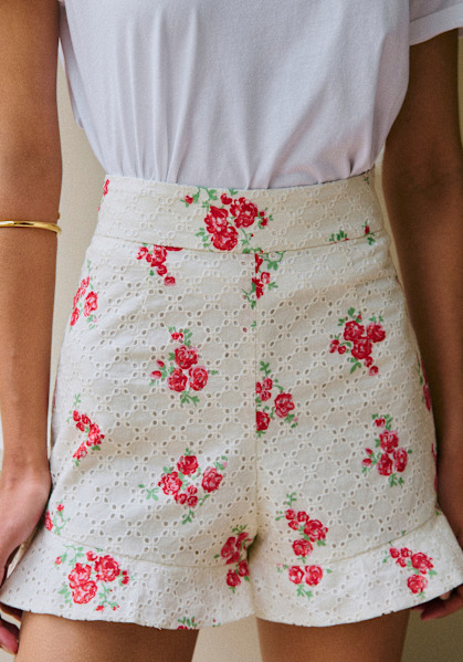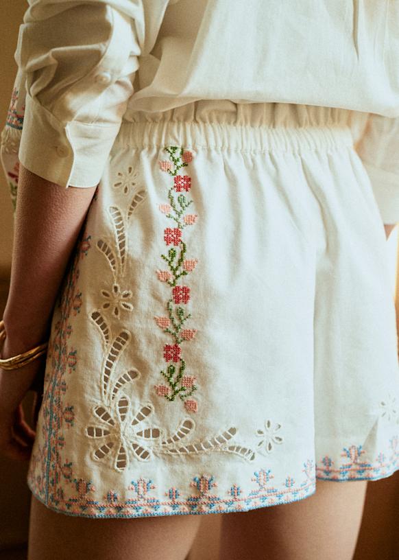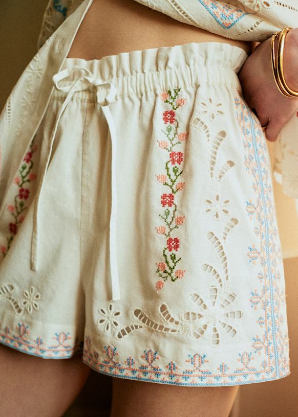 - High-waisted embroidered shorts