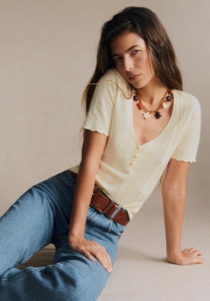 - Elastic waistband and tie on the front