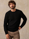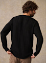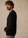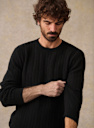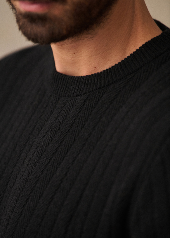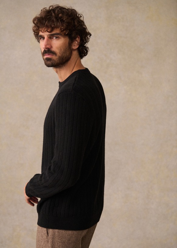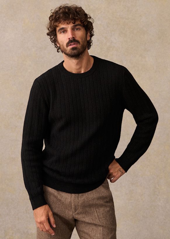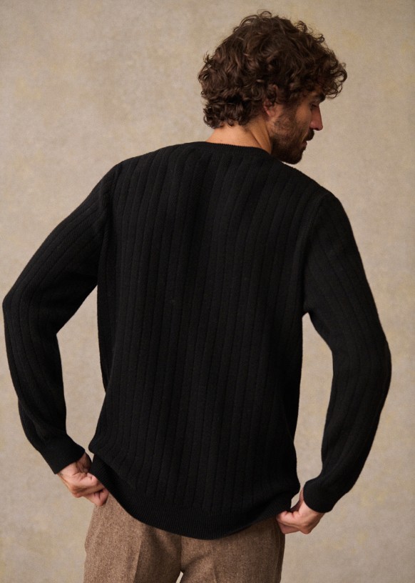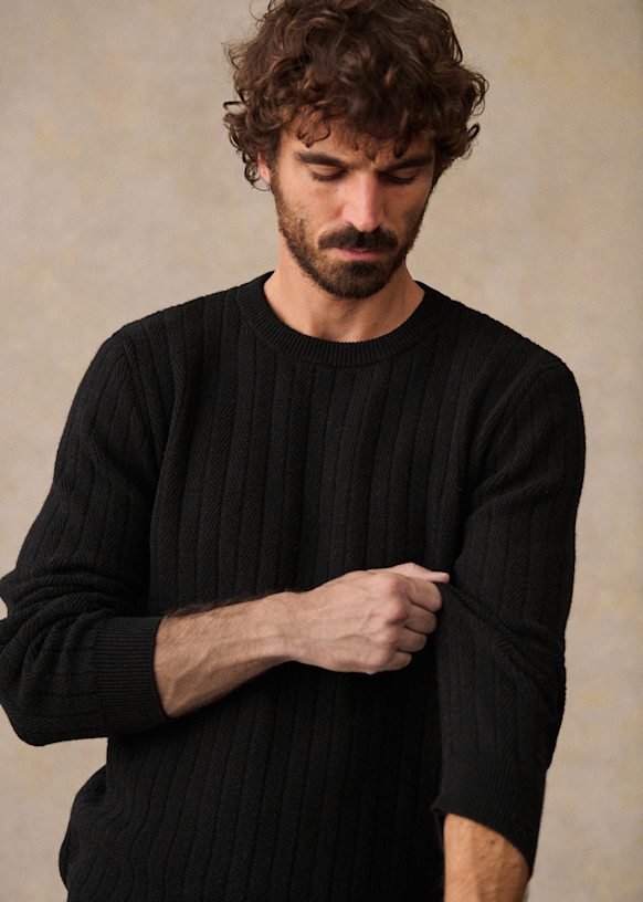 - Ribs at cuffs and bottom of garment