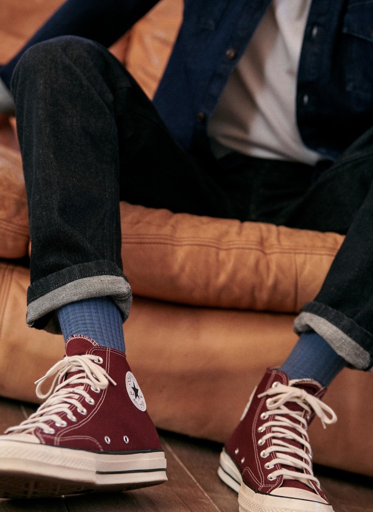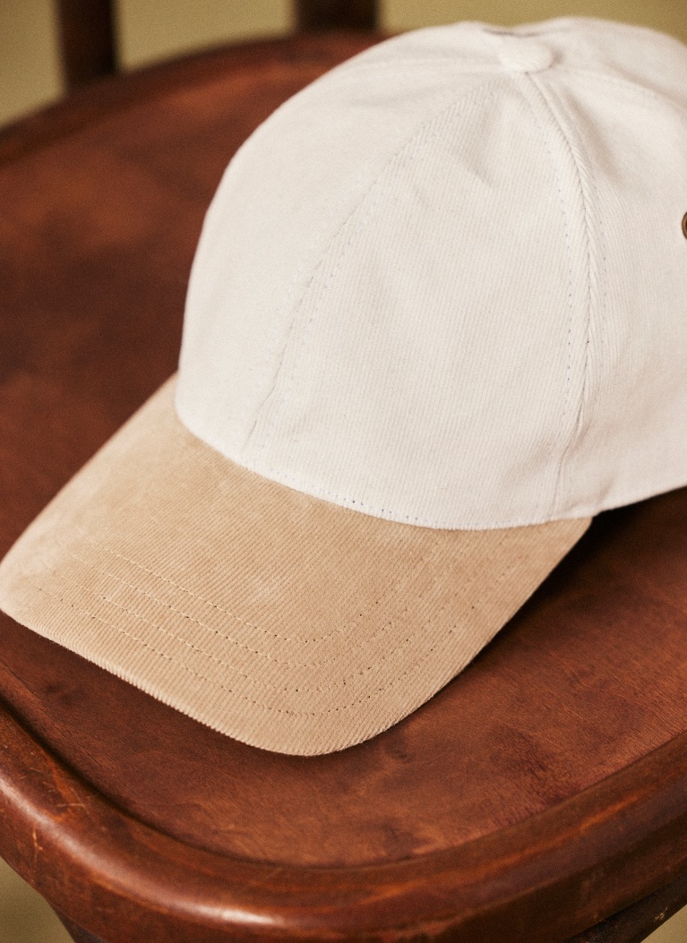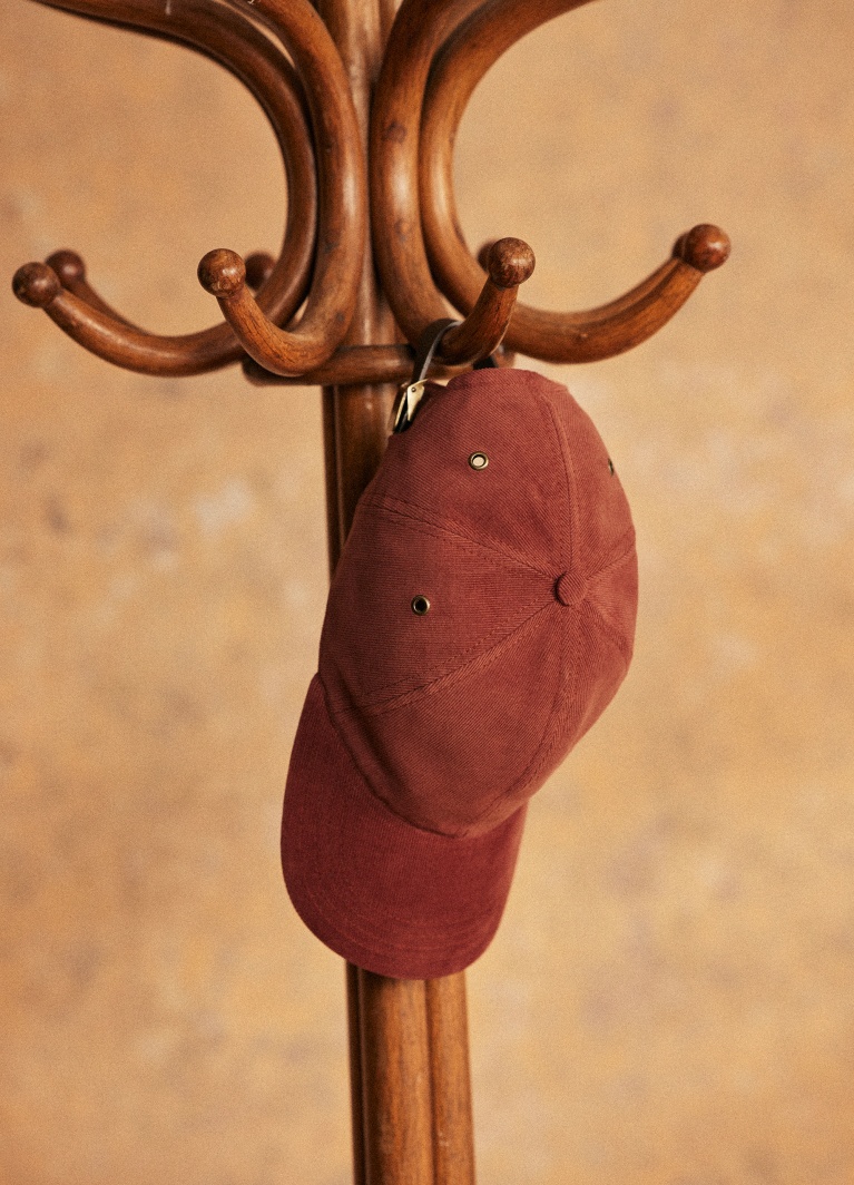 A casual wardrobe that dialogues with materials, details and colors. Jeans and sneakers accessorized with a pair of colored socks, velvet pants that sign an apparently simple outfit. An accessory (falsely) sought after, but resolutely reverent, "besides, usually, I rarely wear caps, but the October one, I wear it every day. I'm crazy about it."