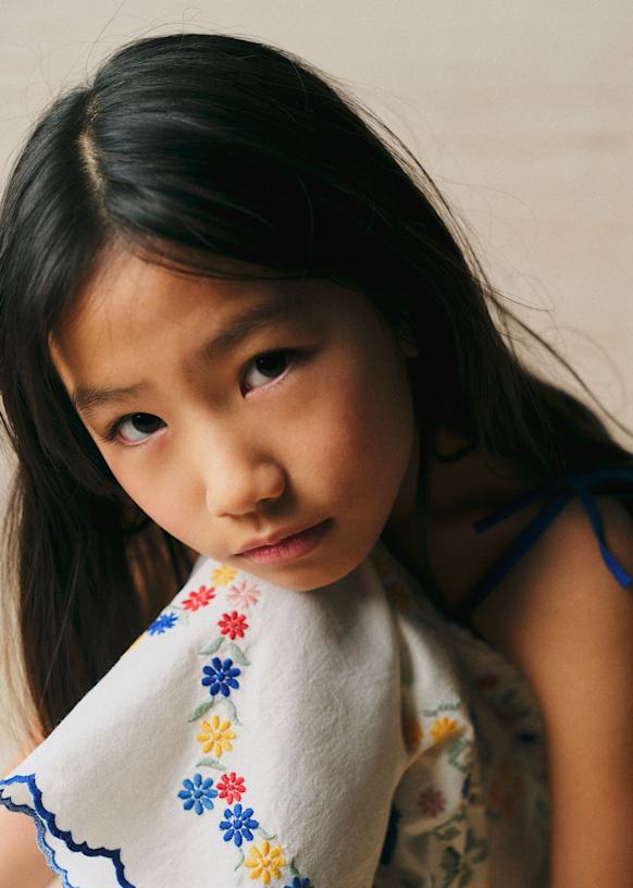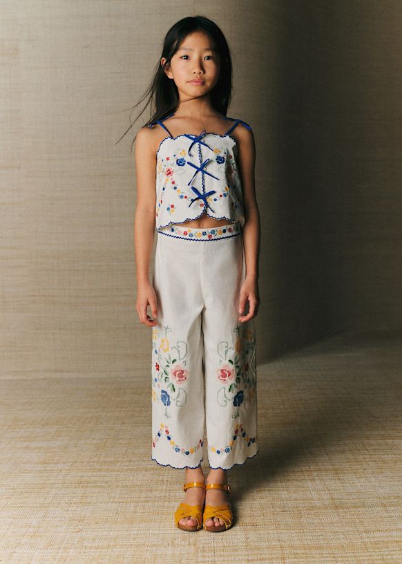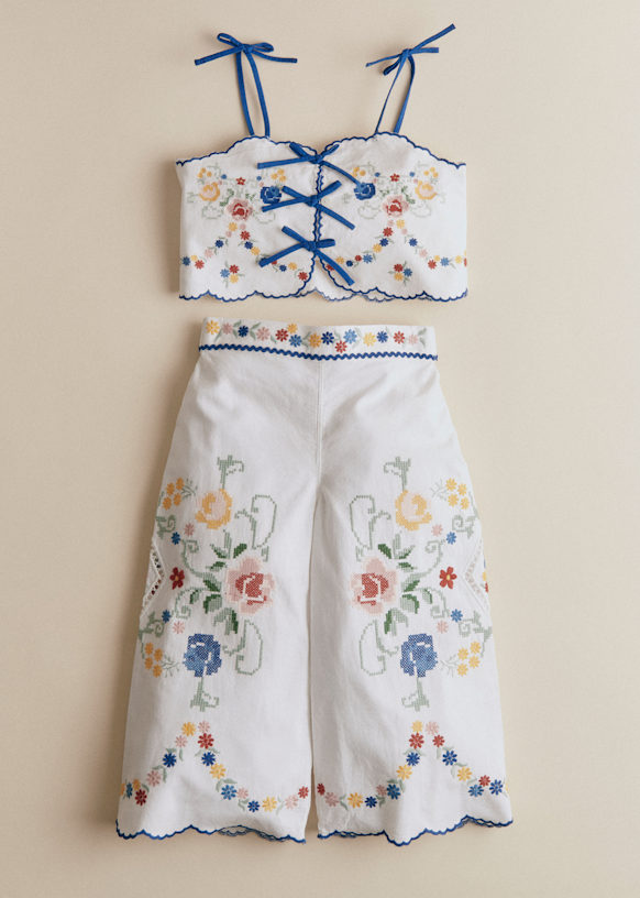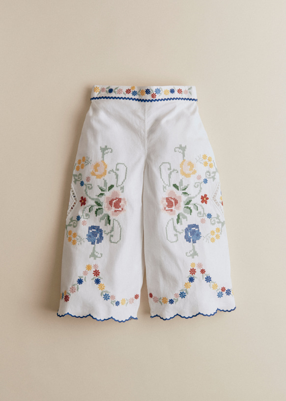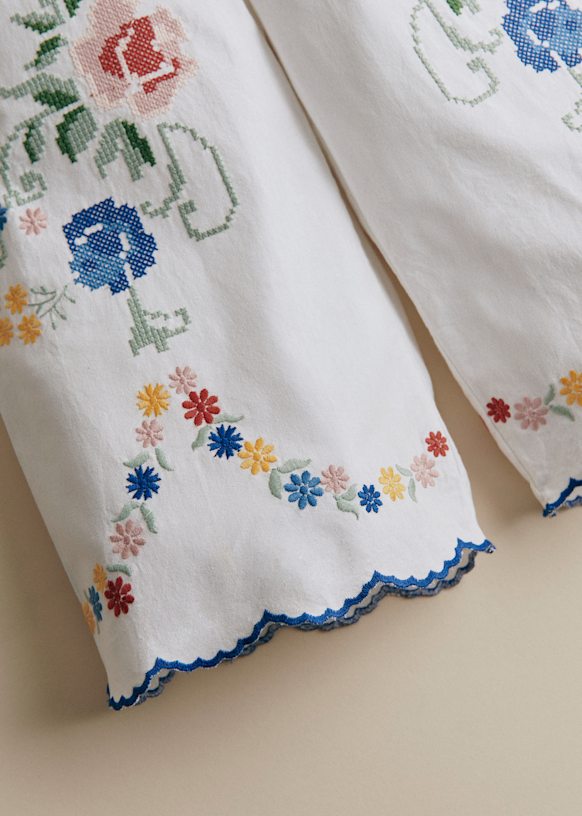 - Embroidered organic cotton trousers