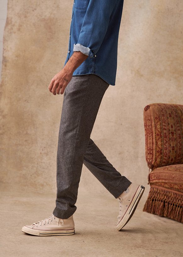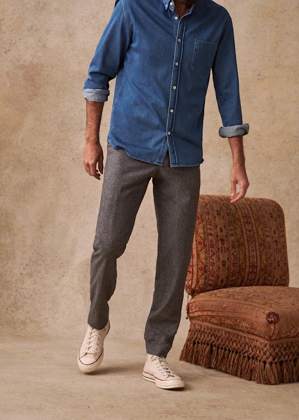 These pants are designed to be worn with sneakers for a casual look, or with shoes for a dressier look. Their Italian wool flannel offers unfailing comfort and impeccable fit.