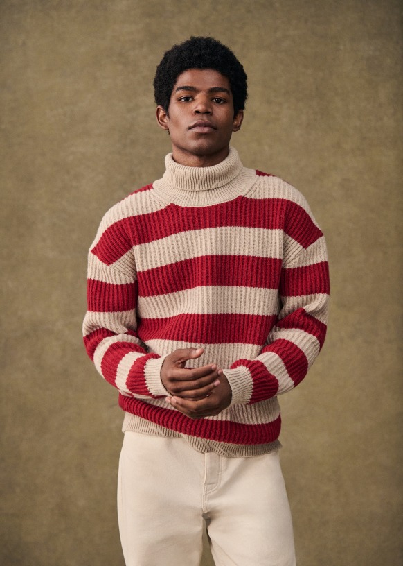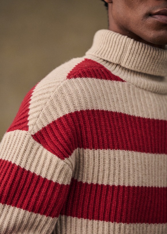 - Ribs at cuffs and bottom of garment