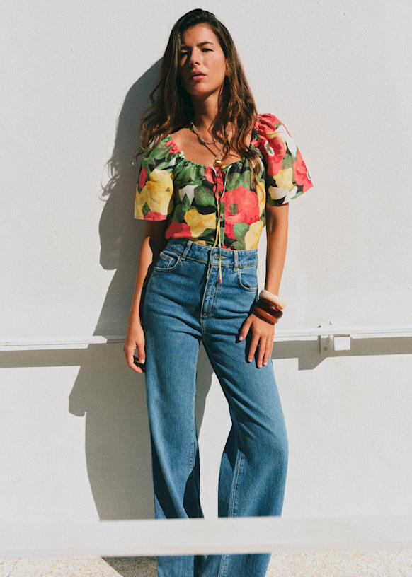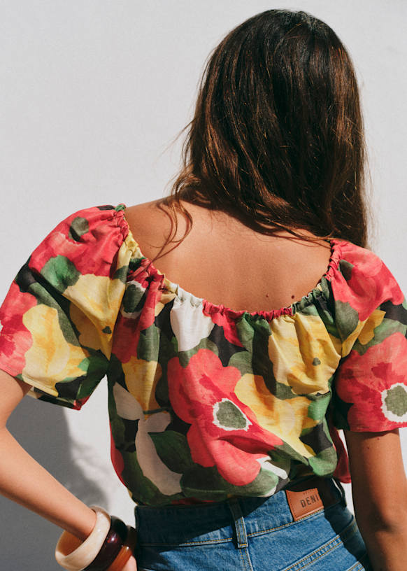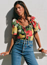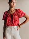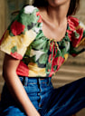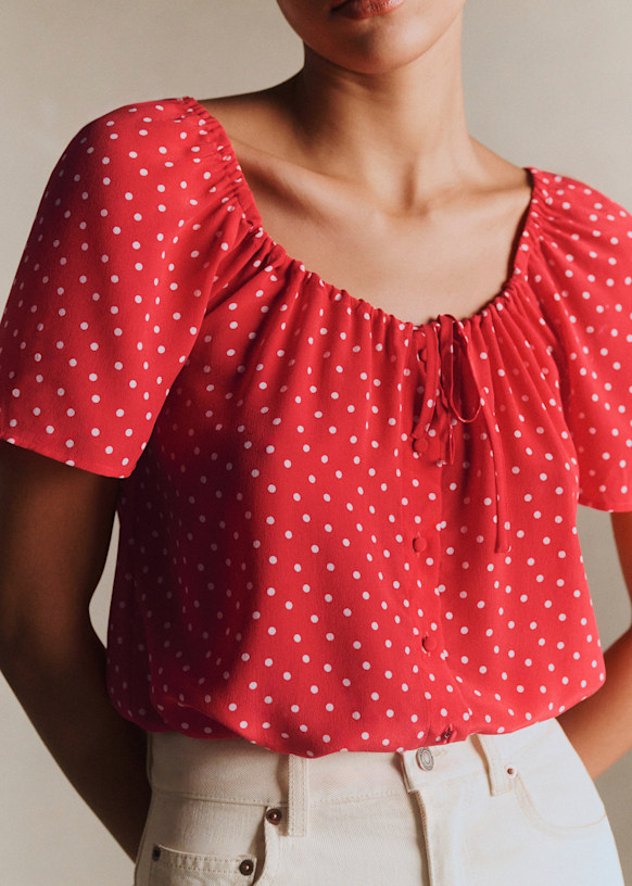 - Printed silk short-sleeved blouse