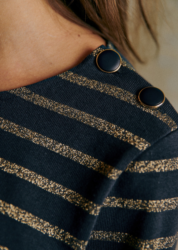 Vêtement certifié GOTS, certification qui assure le caractère biologique des textiles Certificat délivré par Ecocert Greenlife 201118 Sézane. -