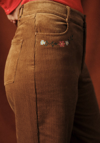 - Pantalon brodé en velours côtelé