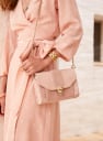 - Version rose poudré en croûte de cuir et cuir lisse