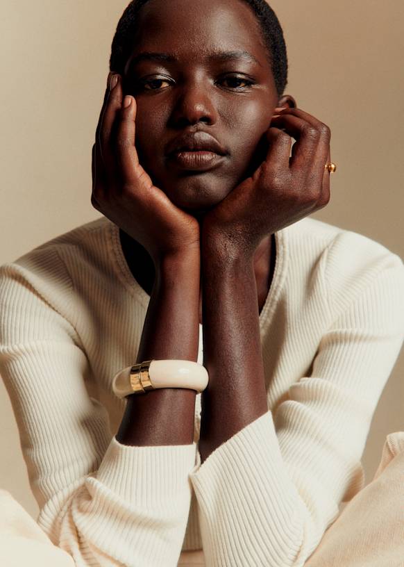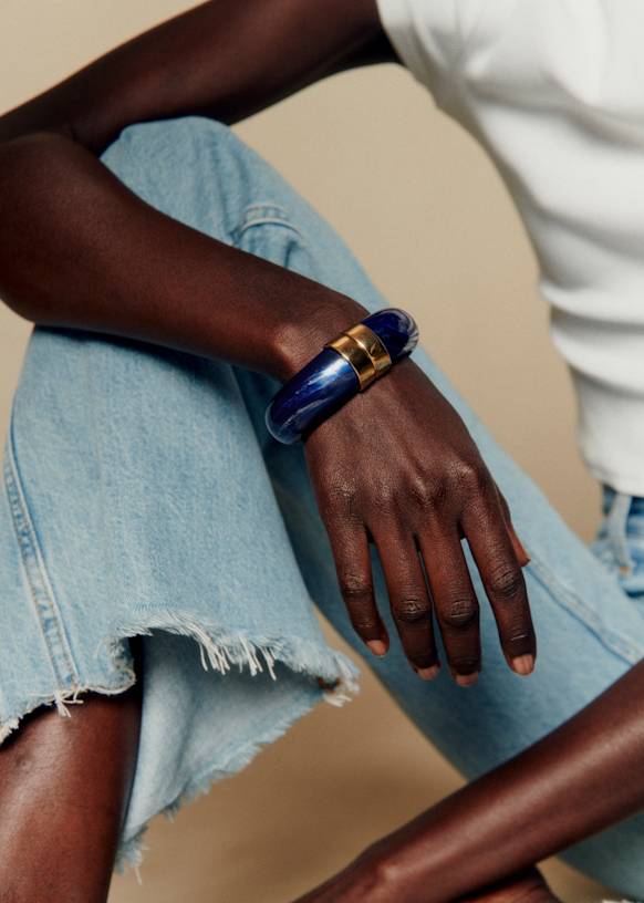 - Manschettenarmband aus mit Feingold überzogenem Messing und Kunstharz
