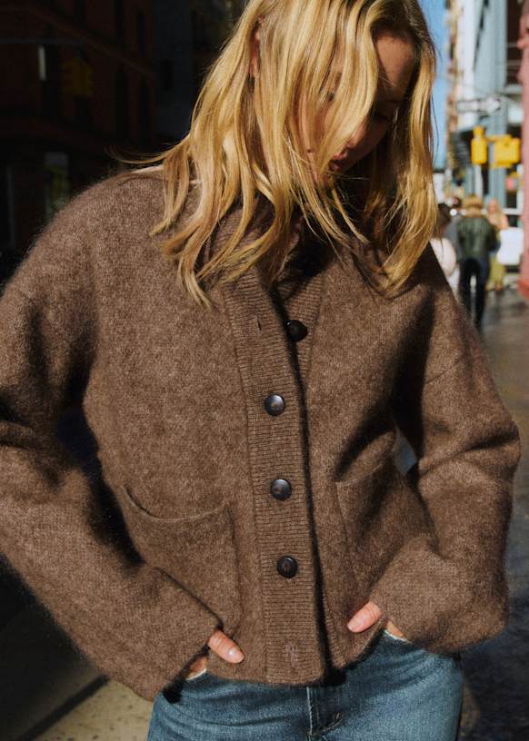 - Kurze Jacke aus Wolle und Kid Mohair mit langen Ärmeln