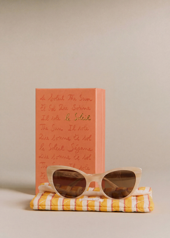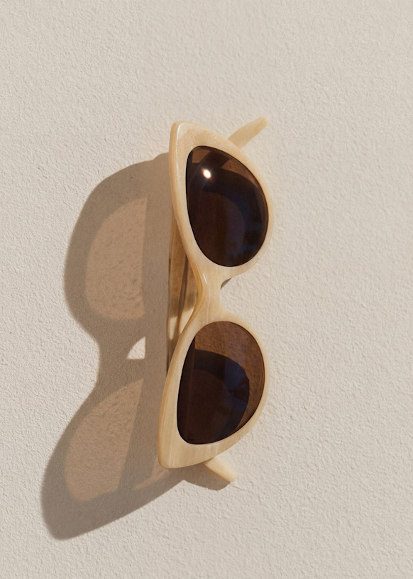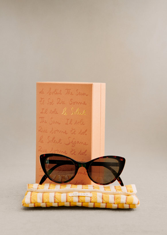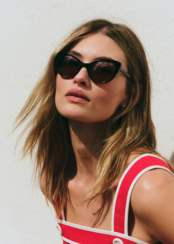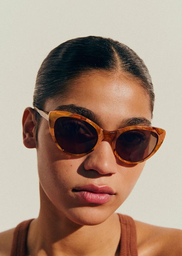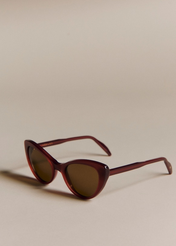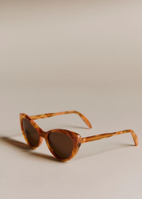 Unser Modell in Katzenaugenform, das für kleine Gesichter geeignet ist. Ein dünner Rahmen aus italienischem Acetat und UV-geschützte Gläser für optimalen Schutz.