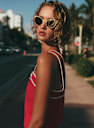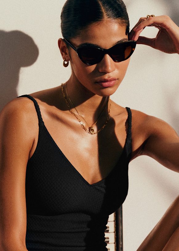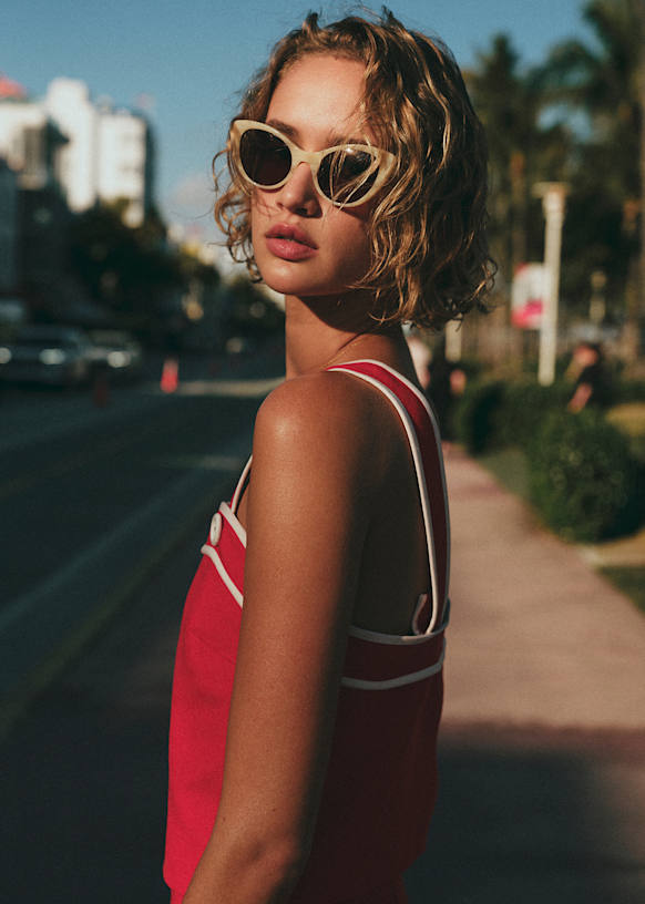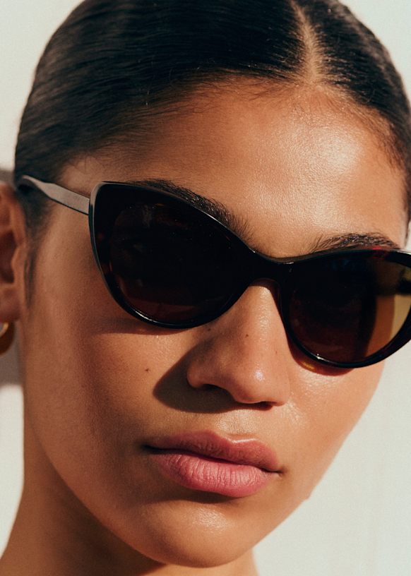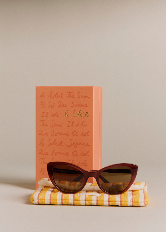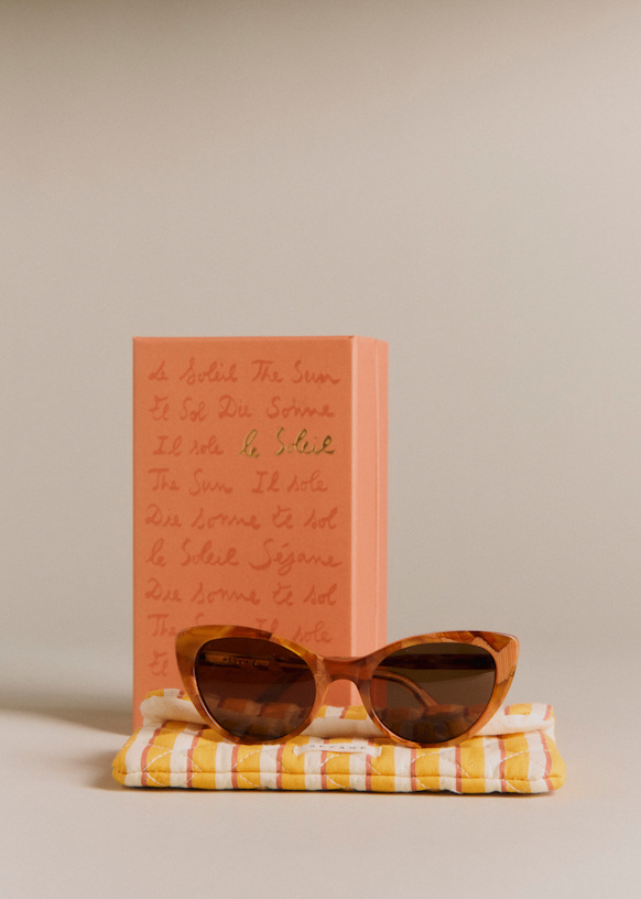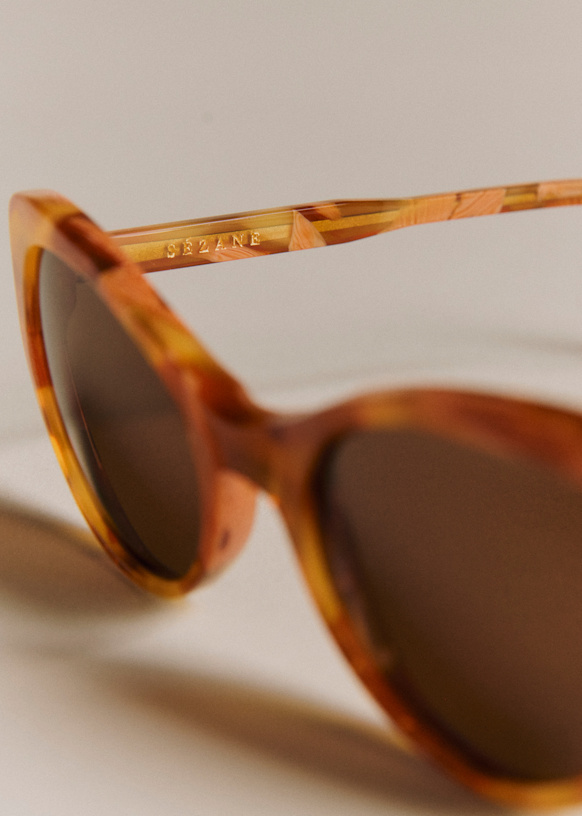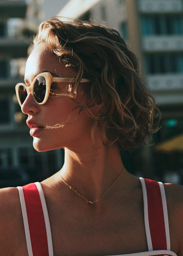 Unser Modell in Katzenaugenform, das für kleine Gesichter geeignet ist. Ein dünner Rahmen aus italienischem Acetat und UV-geschützte Gläser für optimalen Schutz.