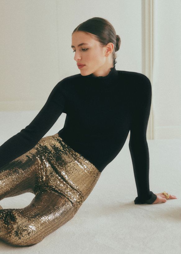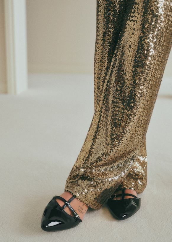 - High-rise sequined trousers