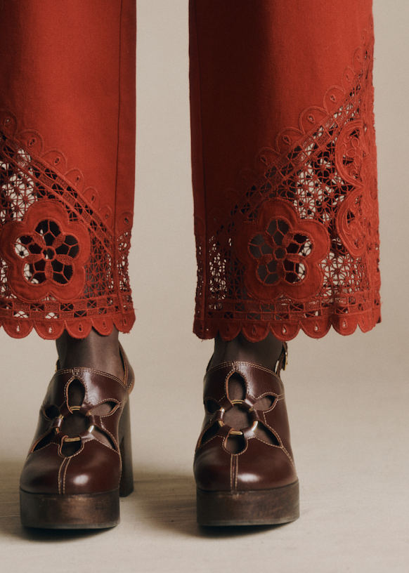 - High-rise embroidered trousers