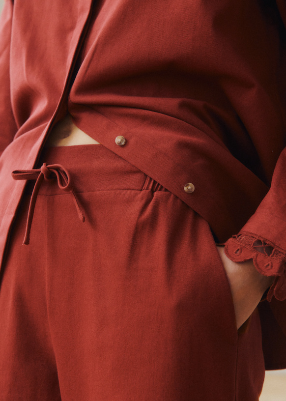 - Elasticated waist tightened with a drawstring