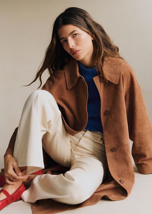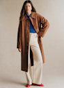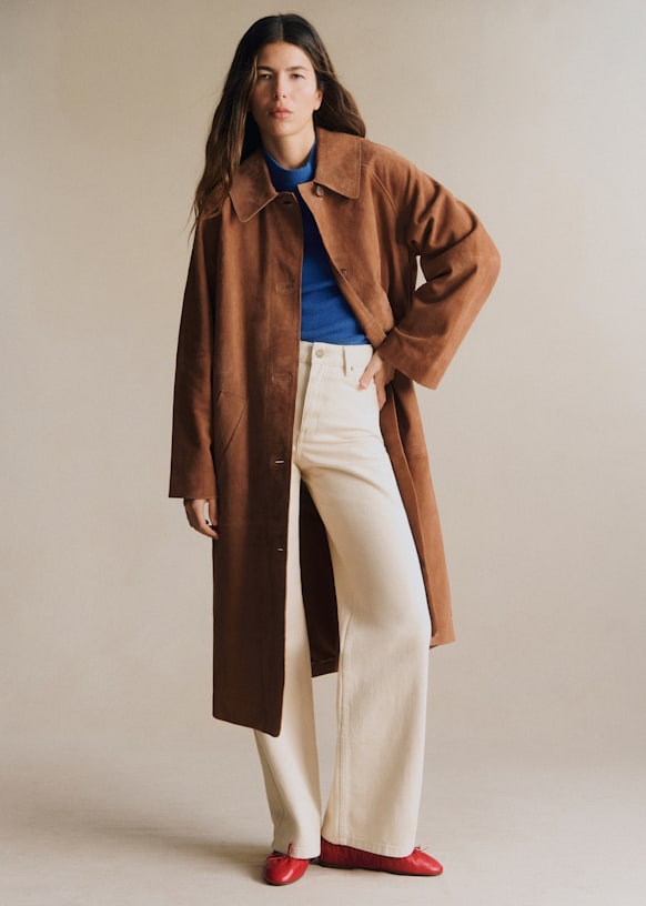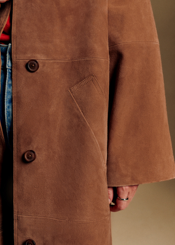 - Long oversized smooth leather coat