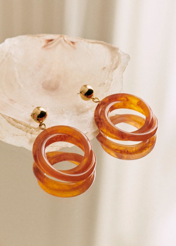 - Gold plated brass and resin earrings