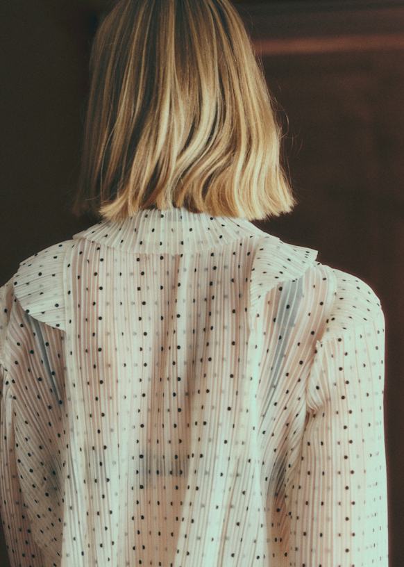 - Pleated blouse with inset ruffles