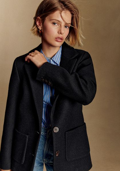 - Stand-up collar and front button fastening