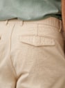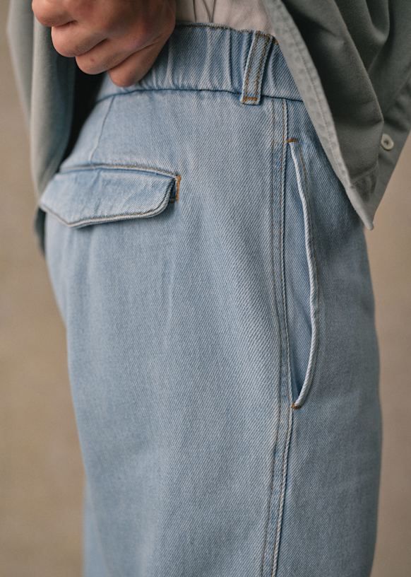 - Elasticated waistband with button closure