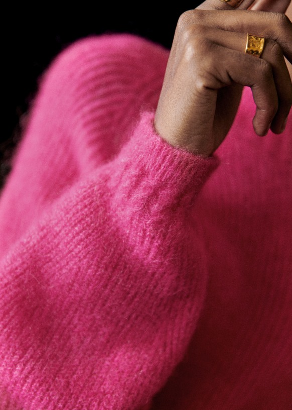 - Twisted knit at the collar, cuffs, armholes and waistline