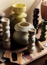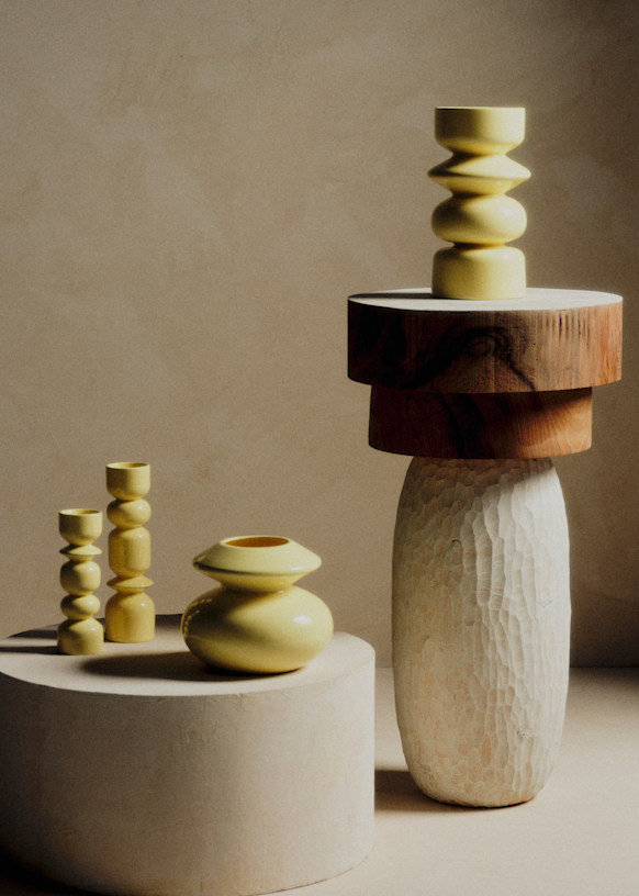 For Les Composantes, the French artist and sculptor Alice Damiens, working under her brand Romie Objetti, has created a collection of objects combining layered compositions and totemic forms. Her work explores wood and ceramic in rich, luminous colors. These expressive pieces, reflecting her unique universe, sit at the intersection of craftsmanship and design.