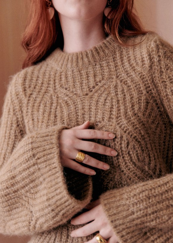 - Alpaca and wool jumper with long flared sleeves