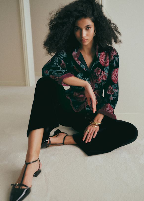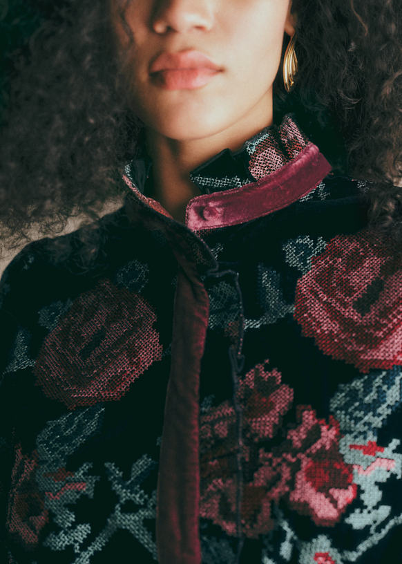 - Chaqueta bordada de terciopelo de manga larga