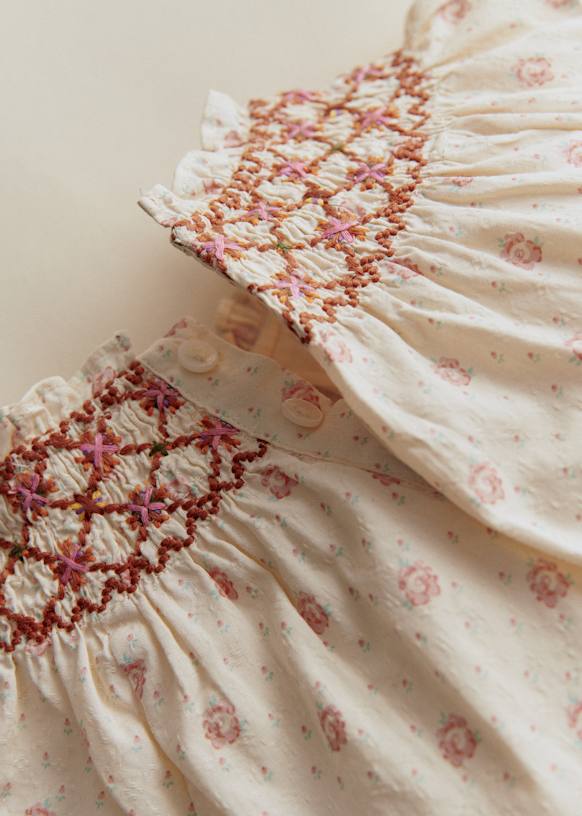 - Escote redondo fruncido y bordado