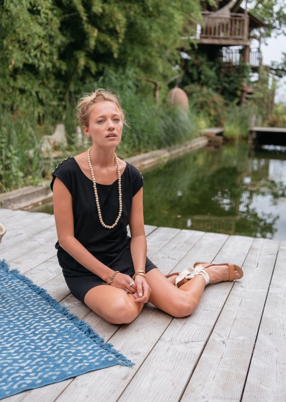- Ceñida a la cintura con un elástico