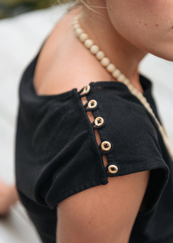 - Delicado juego de botones en los hombros