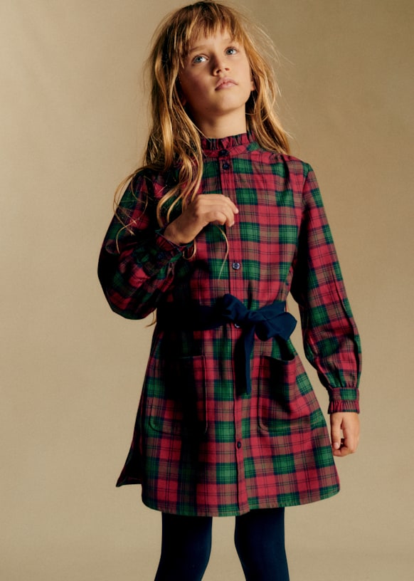 - Volante en el escote y en el bajo de la manga