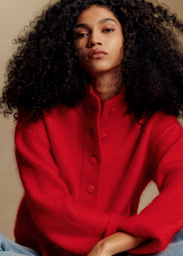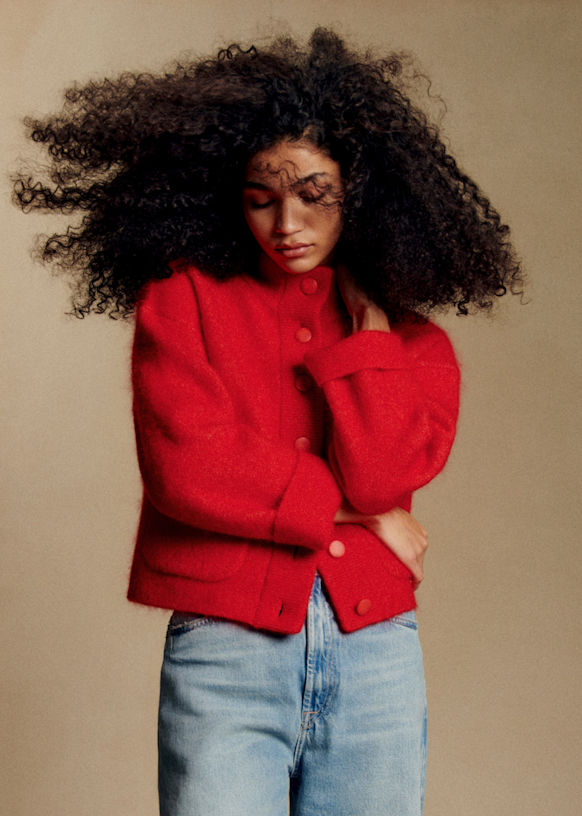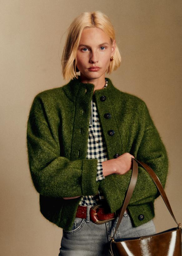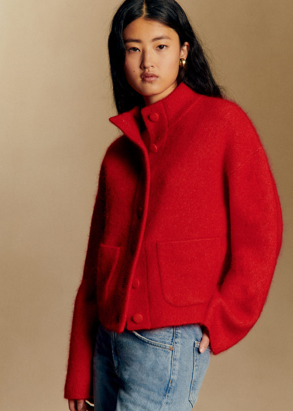 - Kurze Jacke aus Wolle und Kid Mohair mit langen Ärmeln