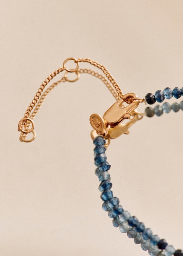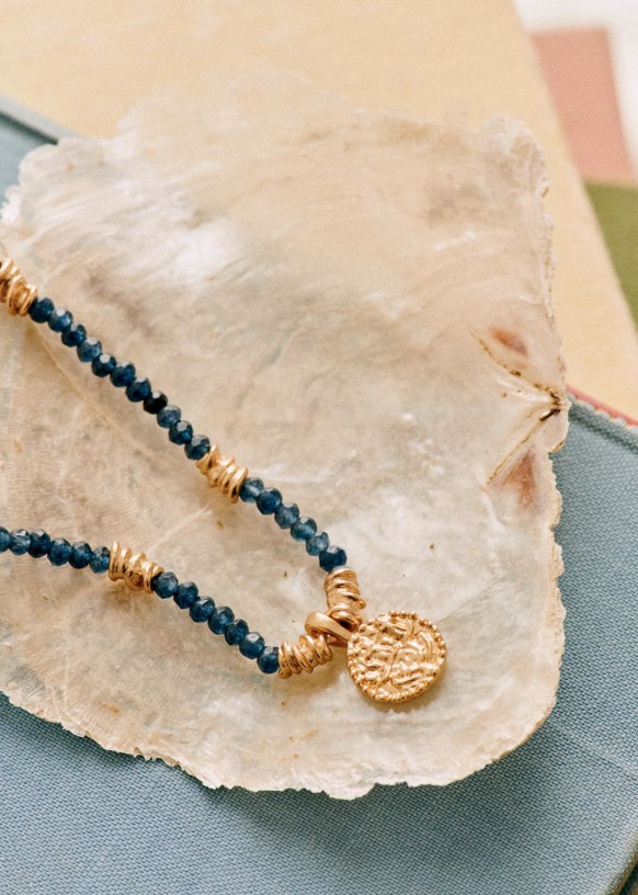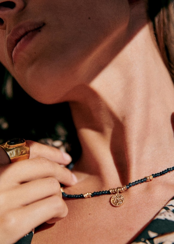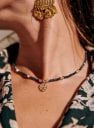 - Halskette aus mit Feingold überzogenem recyceltem Messing und Stein
