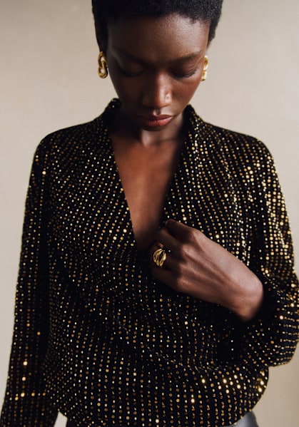 - Paillettenkleid aus Samt mit langen Ärmeln