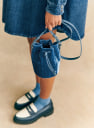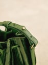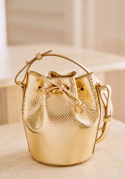 - Henkel aus Leder, verstellbar durch Kragenknopf