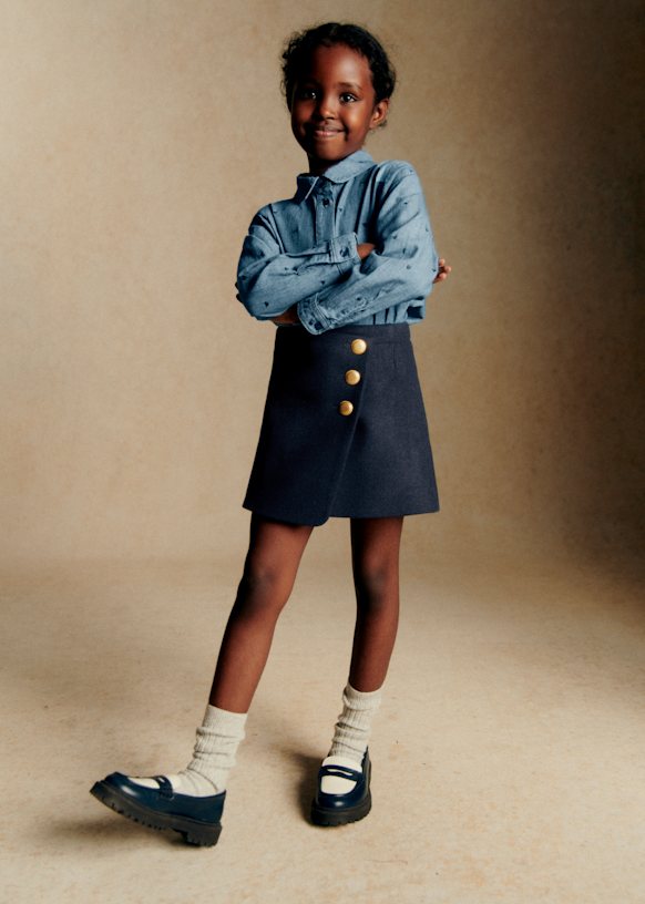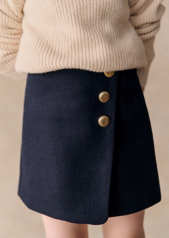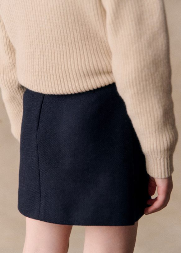 - Kurzer, asymmetrischer Rock aus Wolle.
