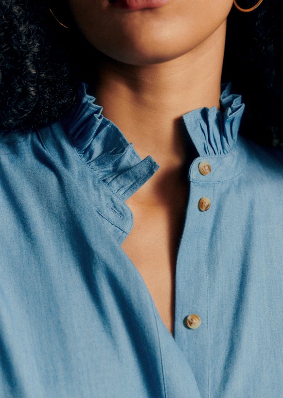- Gathered high collar
