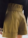 - High-waisted shorts with flared leg