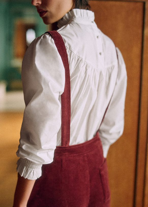 - High-waisted overalls with straps