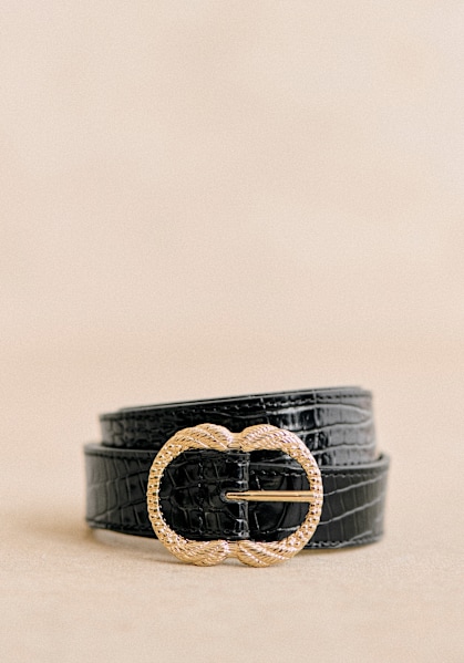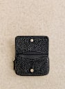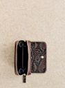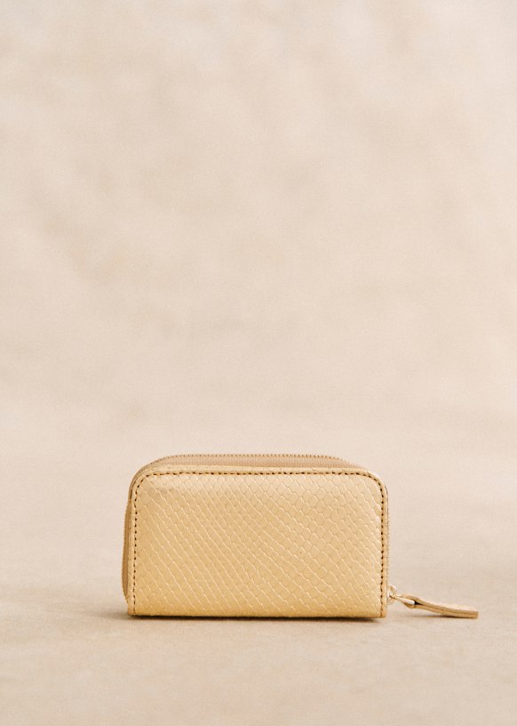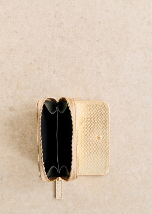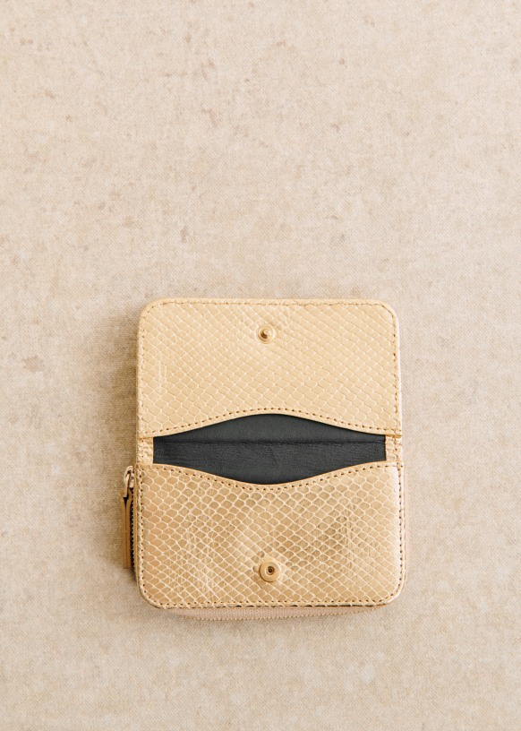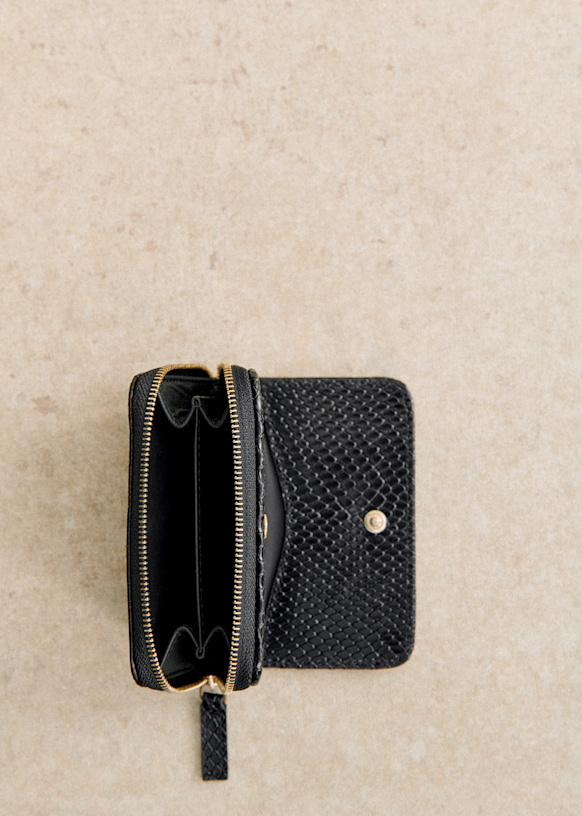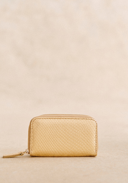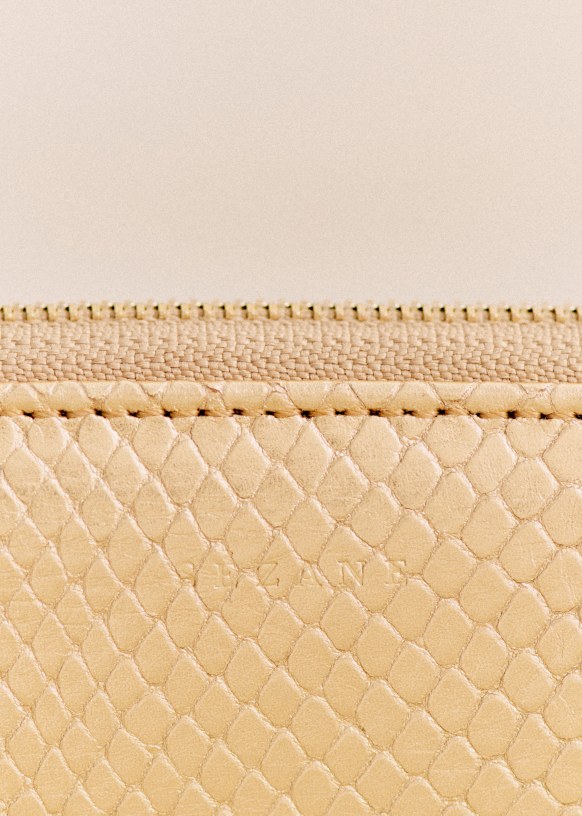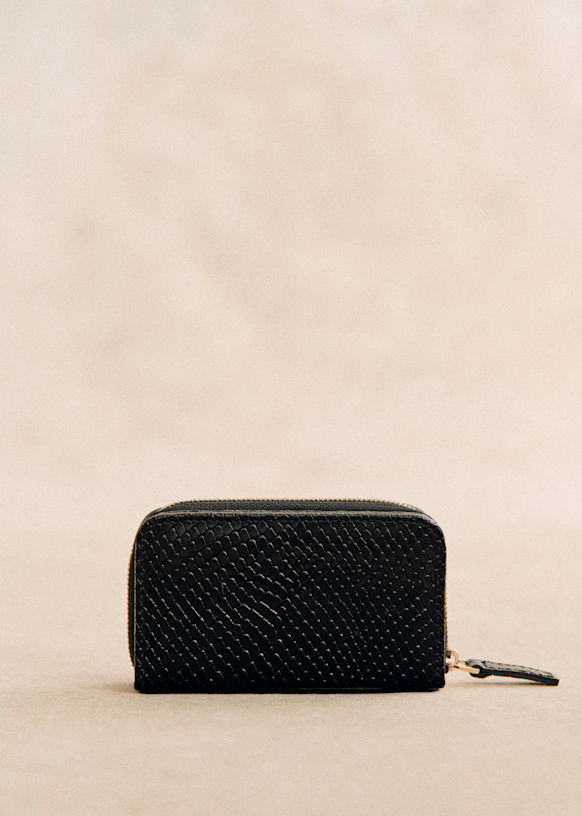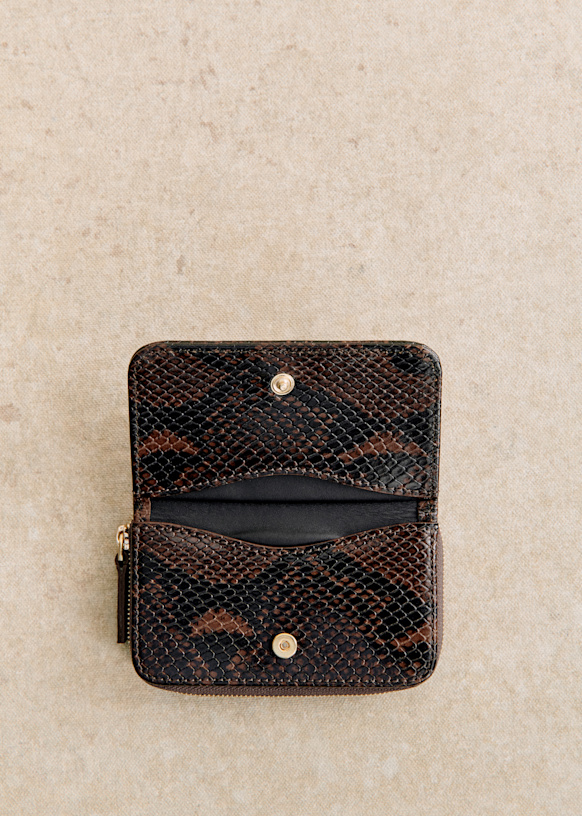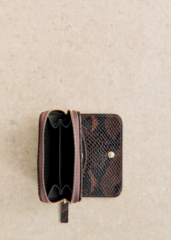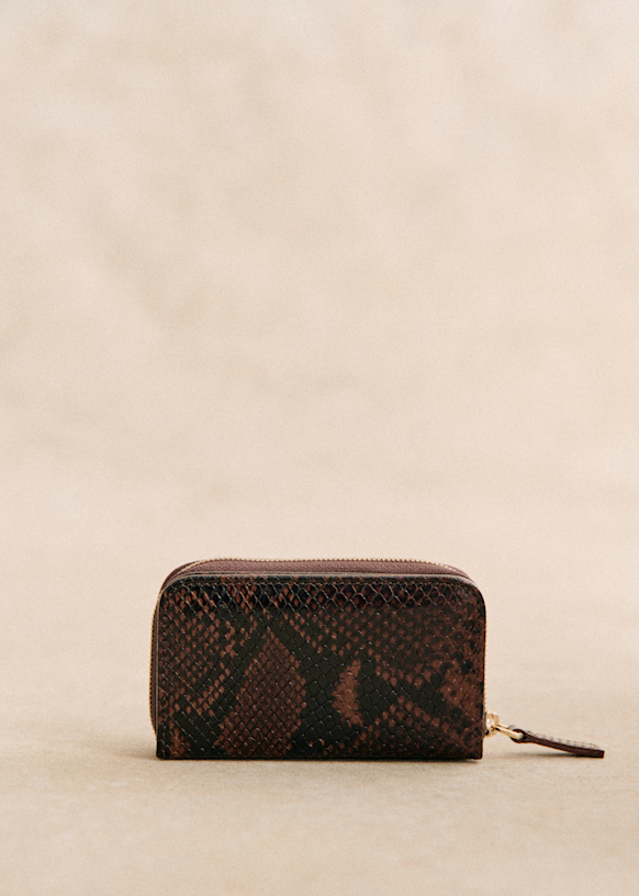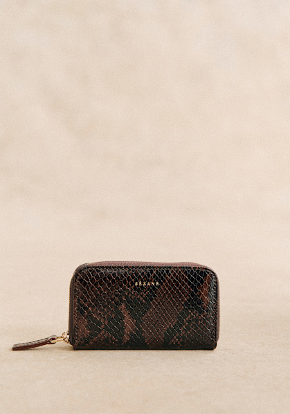 - Smooth leather exterior with snake-embossed finish