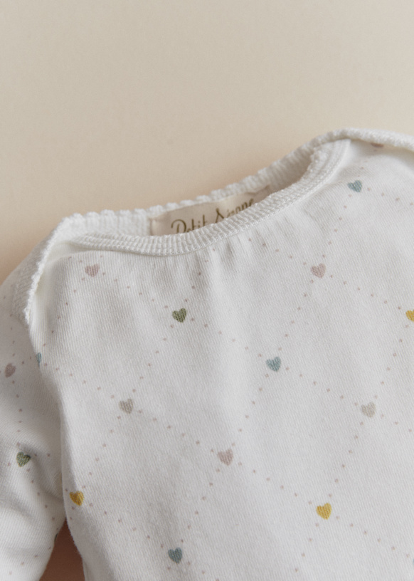 - Long-sleeve printed bodysuit in organic cotton