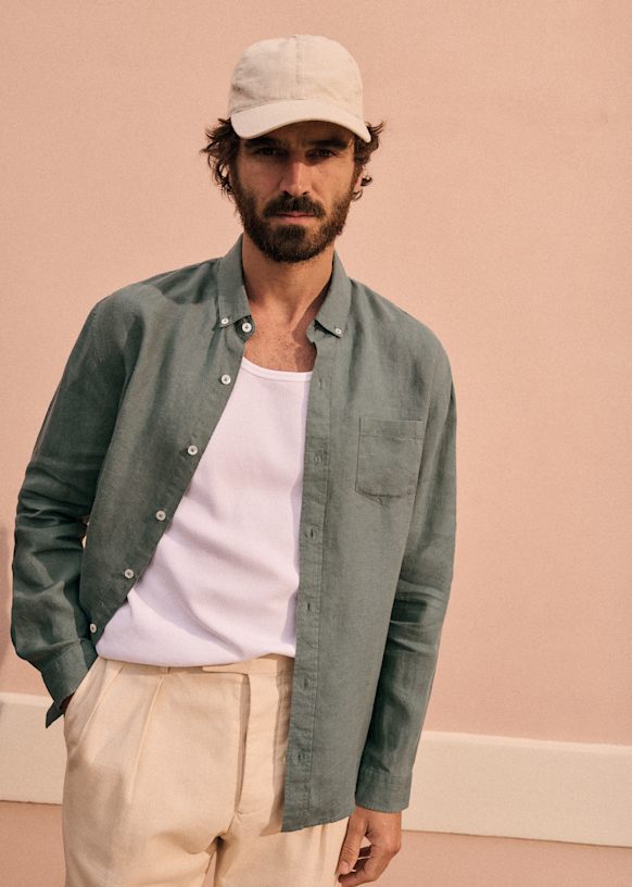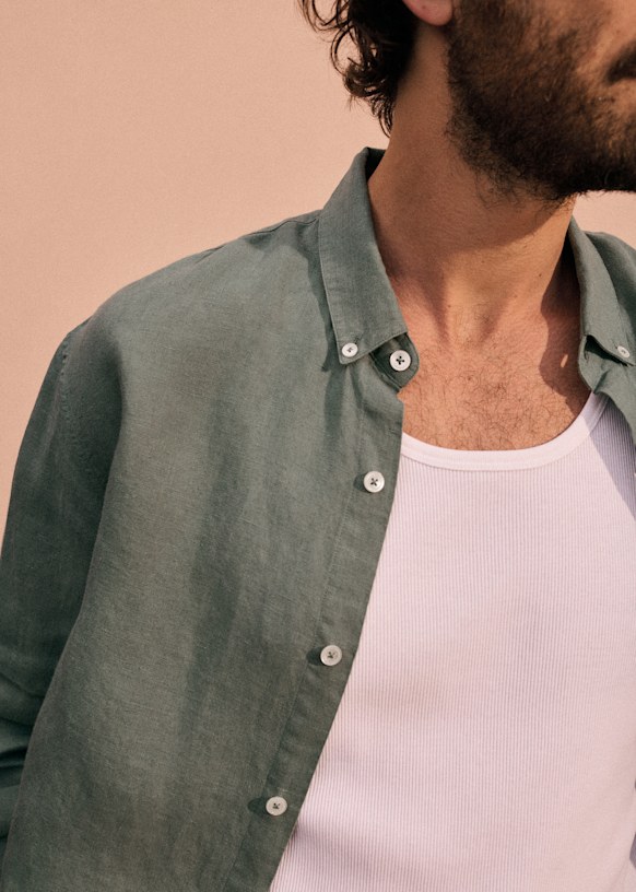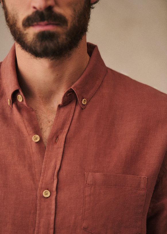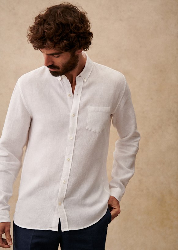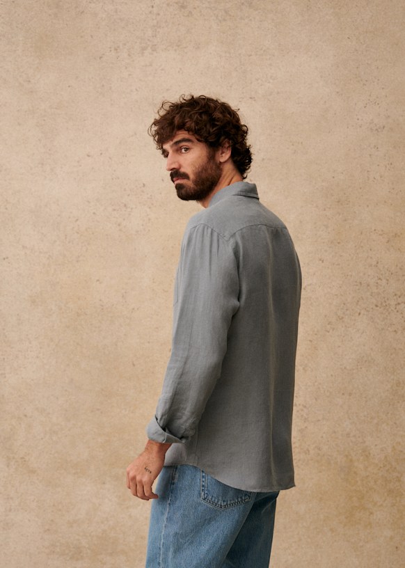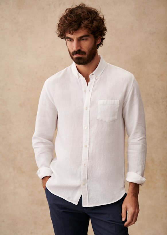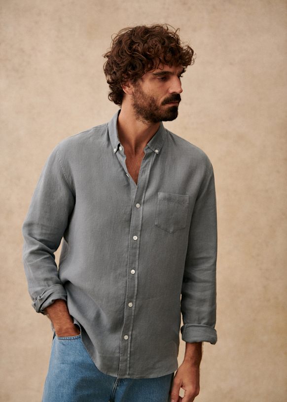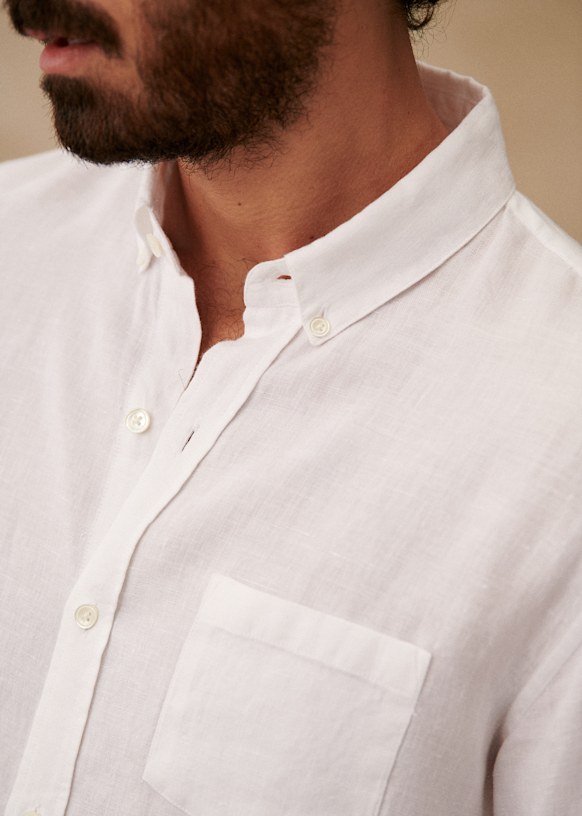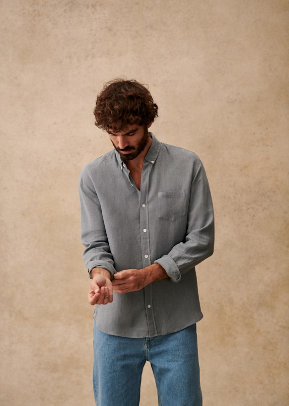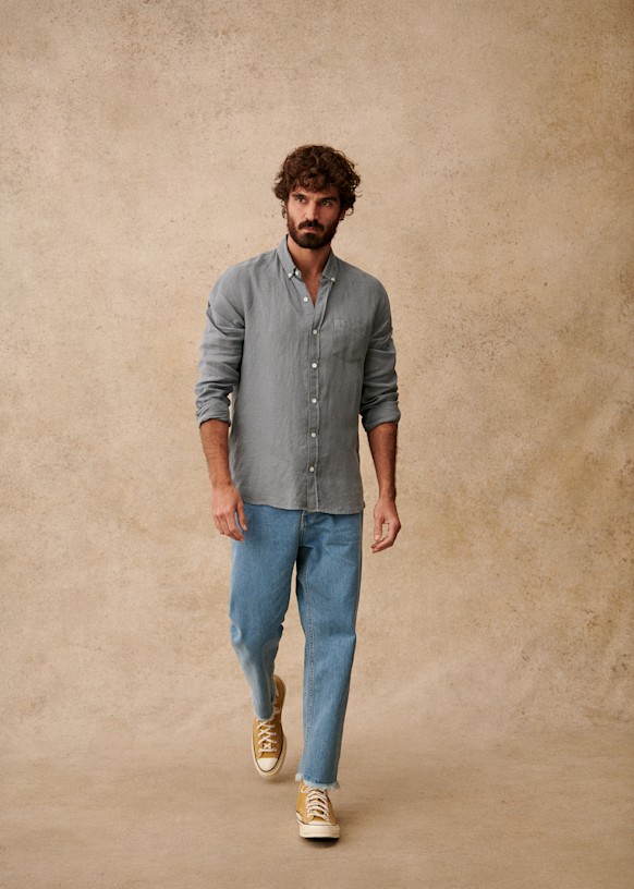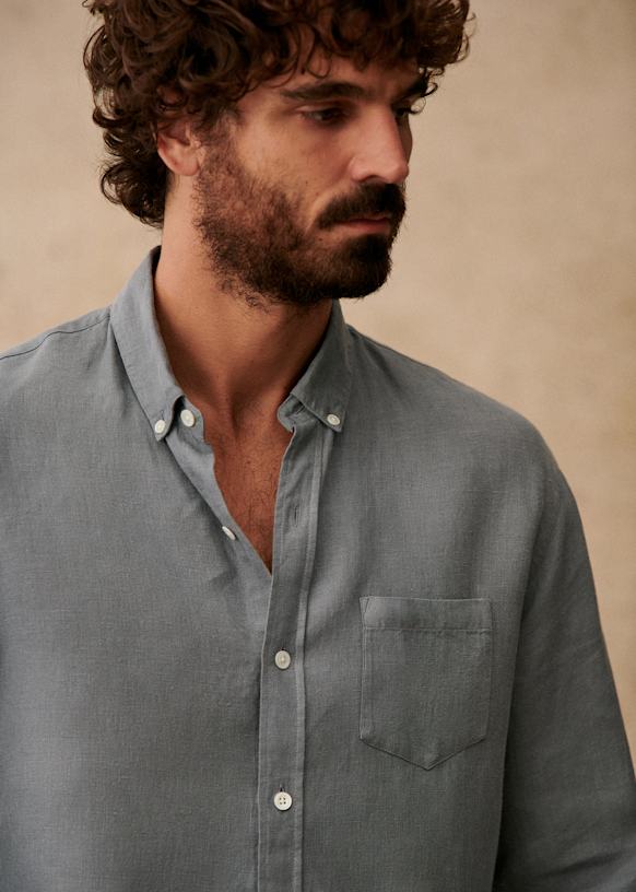 A shirt made of 100% European linen from Libeco, pleasant to wear and light for the summer. The buttoned collar and patch pocket give it a casual look.