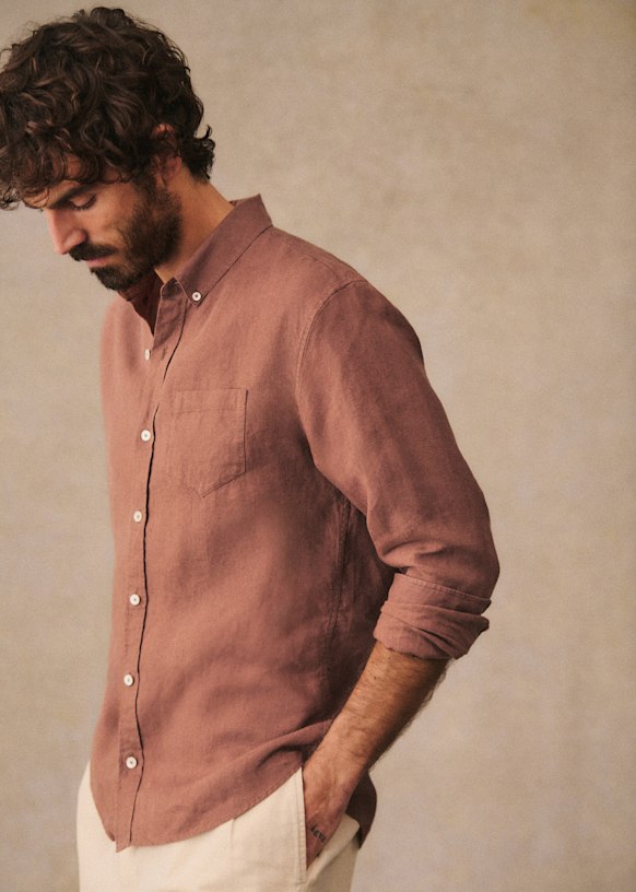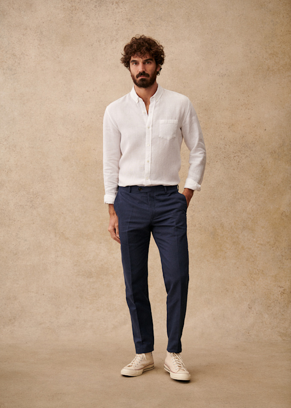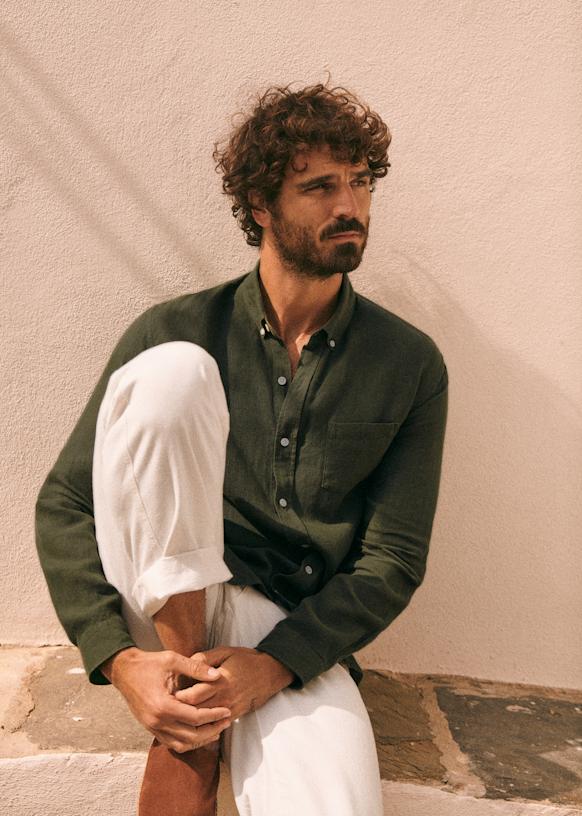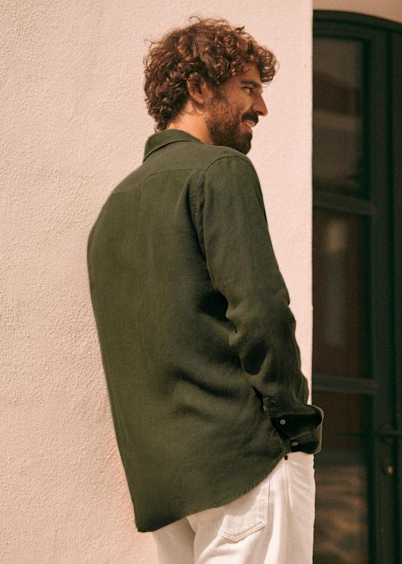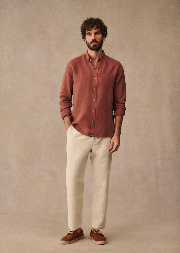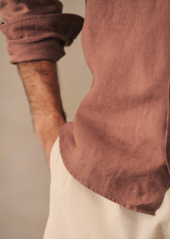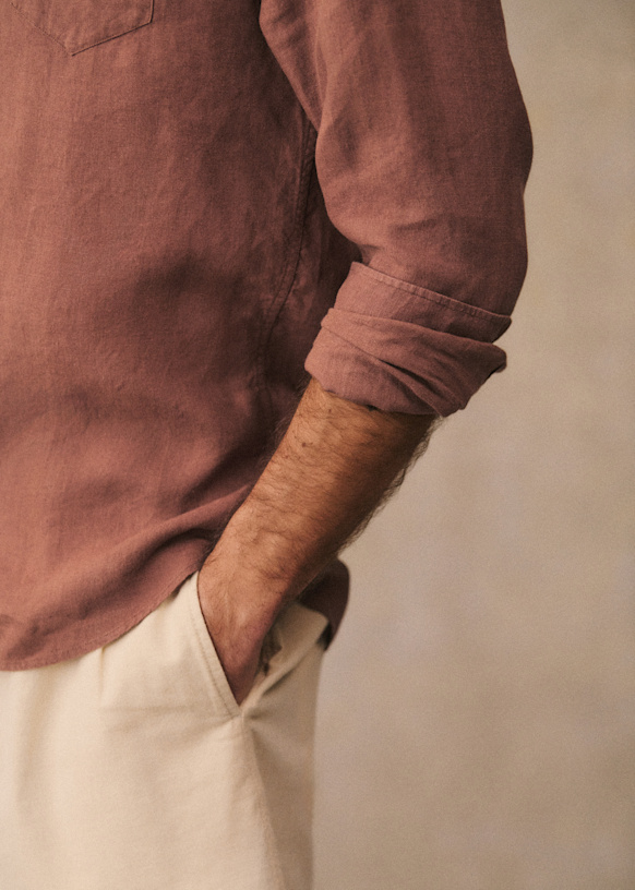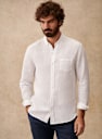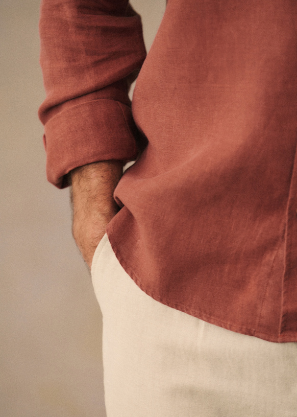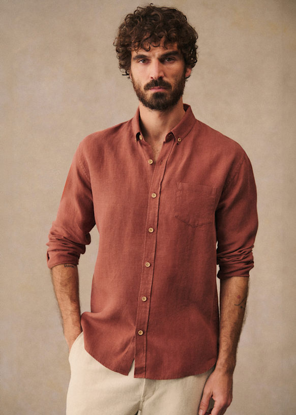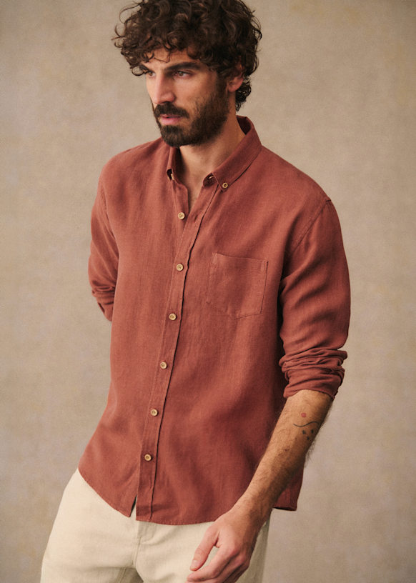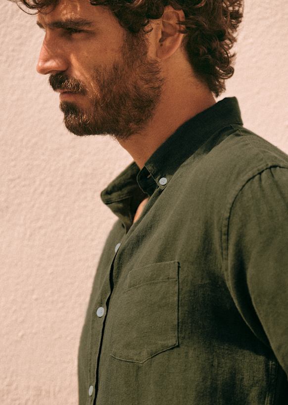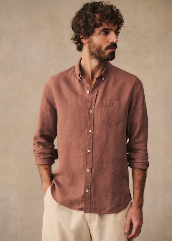 A shirt made of 100% European linen from Libeco, pleasant to wear and light for the summer. The buttoned collar and patch pocket give it a casual look.