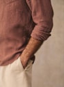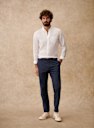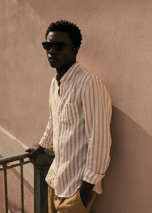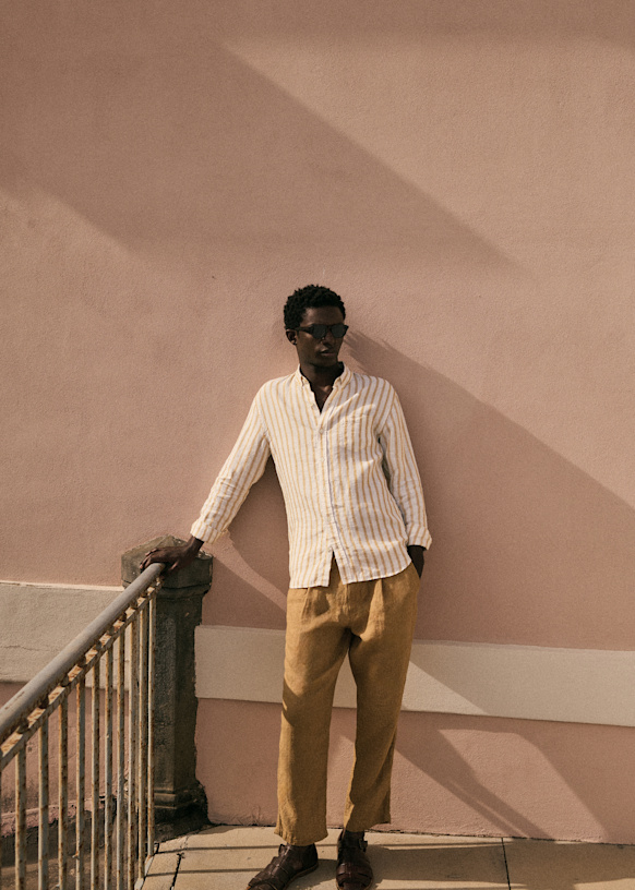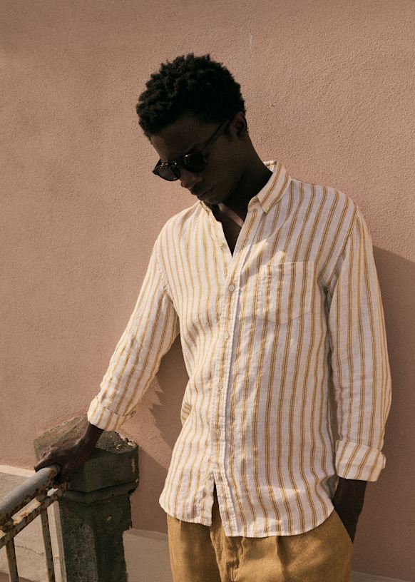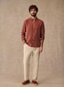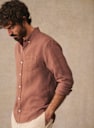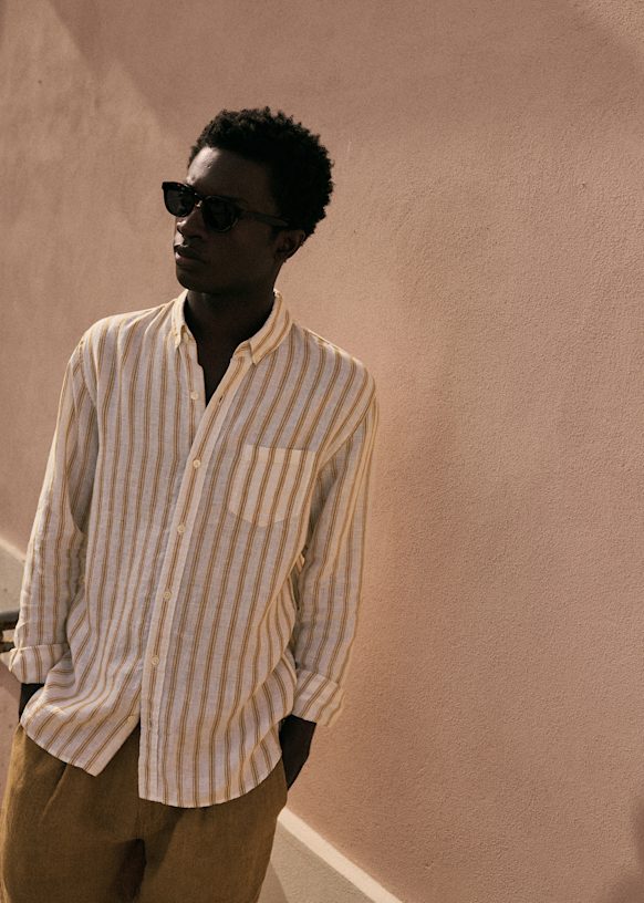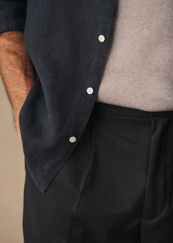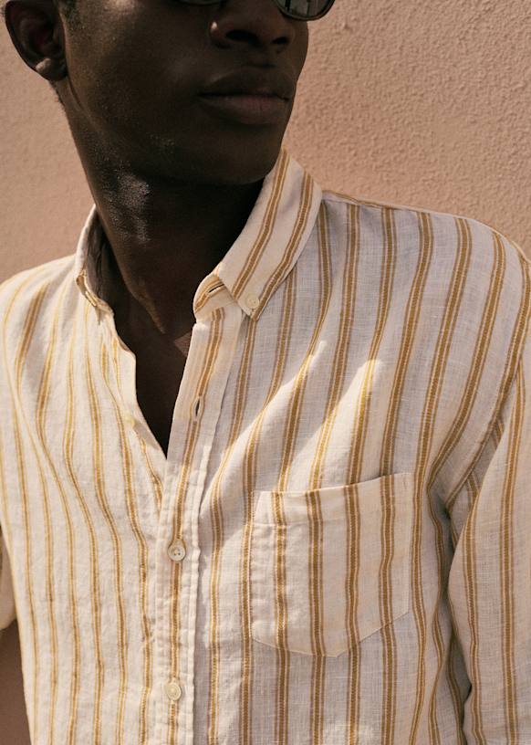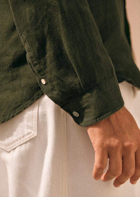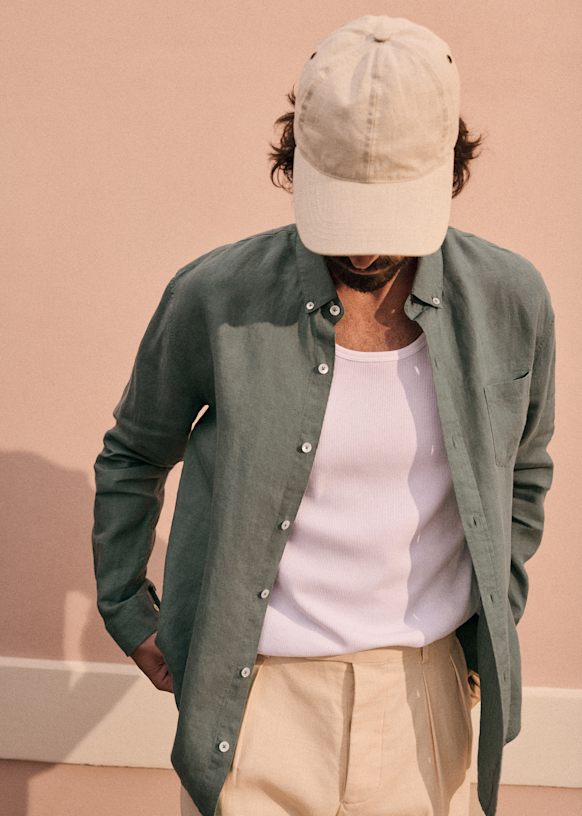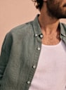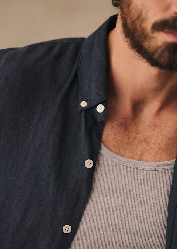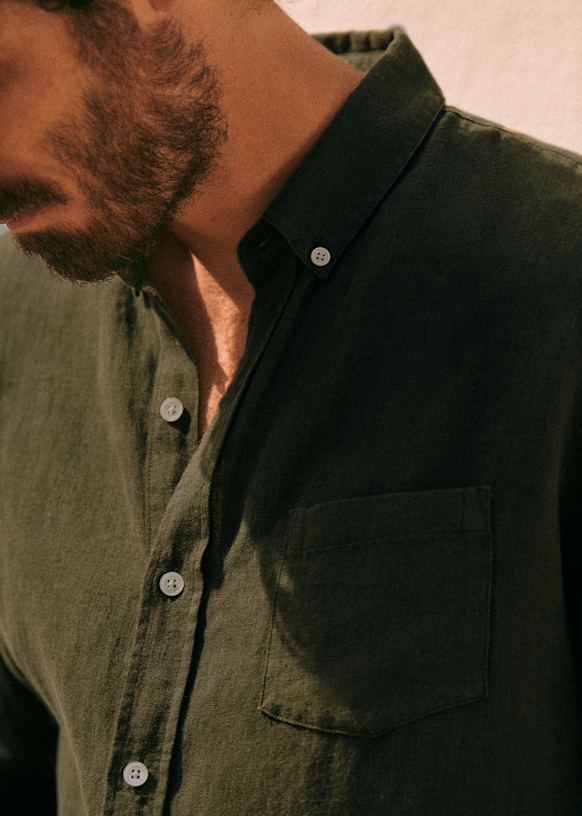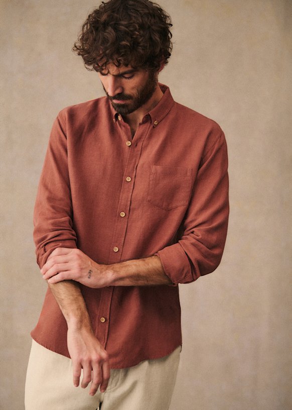 A shirt made of 100% European linen from Libeco, pleasant to wear and light for the summer. The buttoned collar and patch pocket give it a casual look.