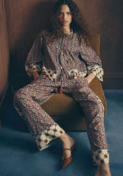 Sézane’s collaboration with Antoinette Poisson, the celebrated French maison renowned for its artisanal wallpapers and decorative papers, brings its historic savoir-faire to its first prêt-à-porter collection.