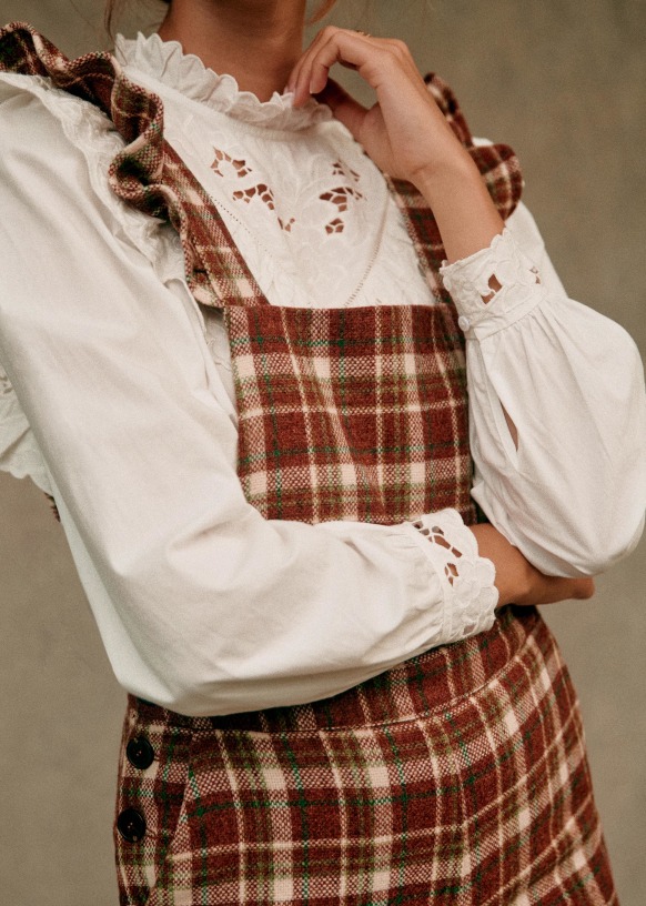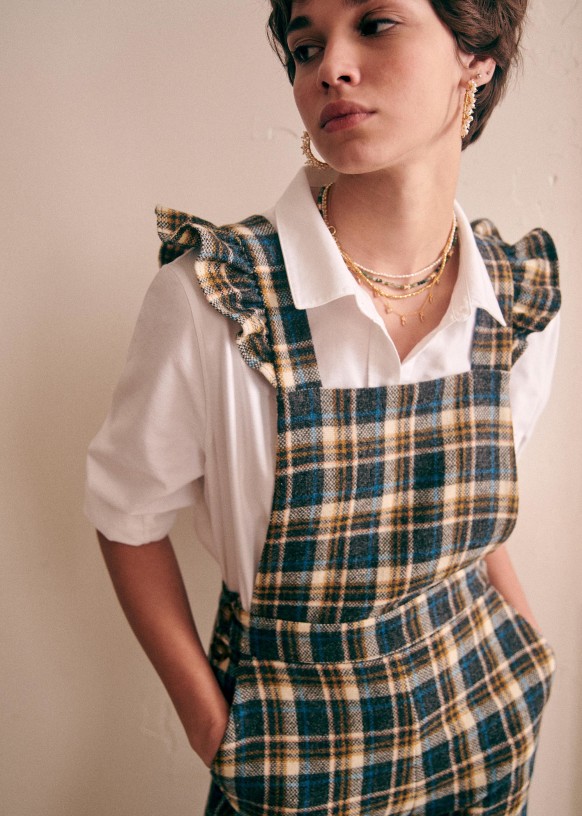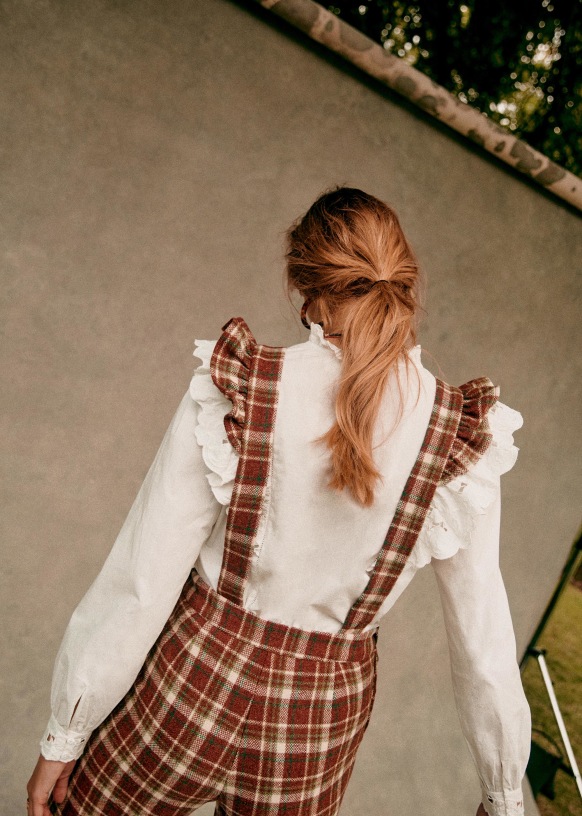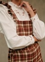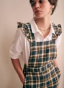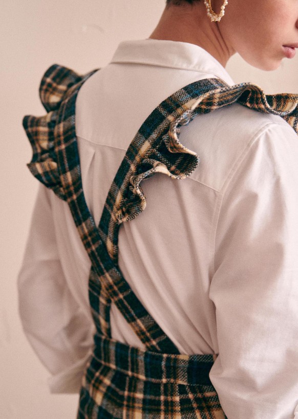 - Ruffled straps crossed at the back and adjustable with buttons