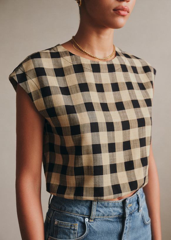 - Blusa de cuadros sin mangas