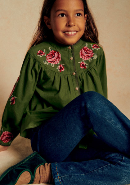 - Camisa bordada de algodón con mangas largas