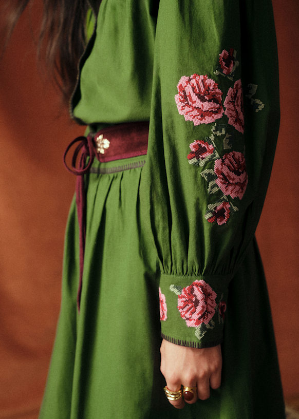 Sézane se une a Baziszt para dar vida a una línea repleta de bordados, que celebra la artesanía y los materiales naturales.